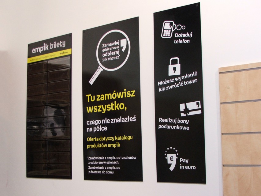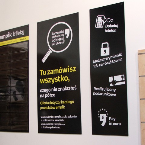 Estetyczne i odpowiednio rozmieszczone oznakowanie salonu handlowego, to relatywnie przystępna cenowo forma reklamy, która ma duże znaczenie w pozyskaniu klienta. Naszą specjalnością jest kompleksowe oznakowanie wewnętrzne biur i lokali handlowych. Wykonujemy całość oznakowania wnętrz, włącznie ze specjalnie projektowanymi prezenterami do mebli, tapetami oraz witrynami.